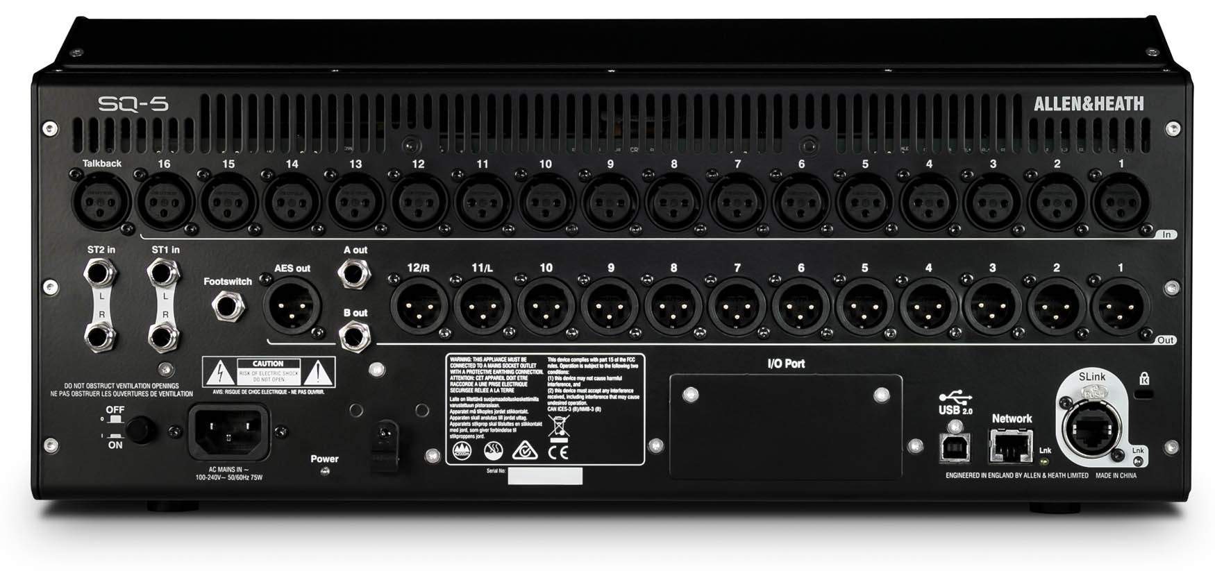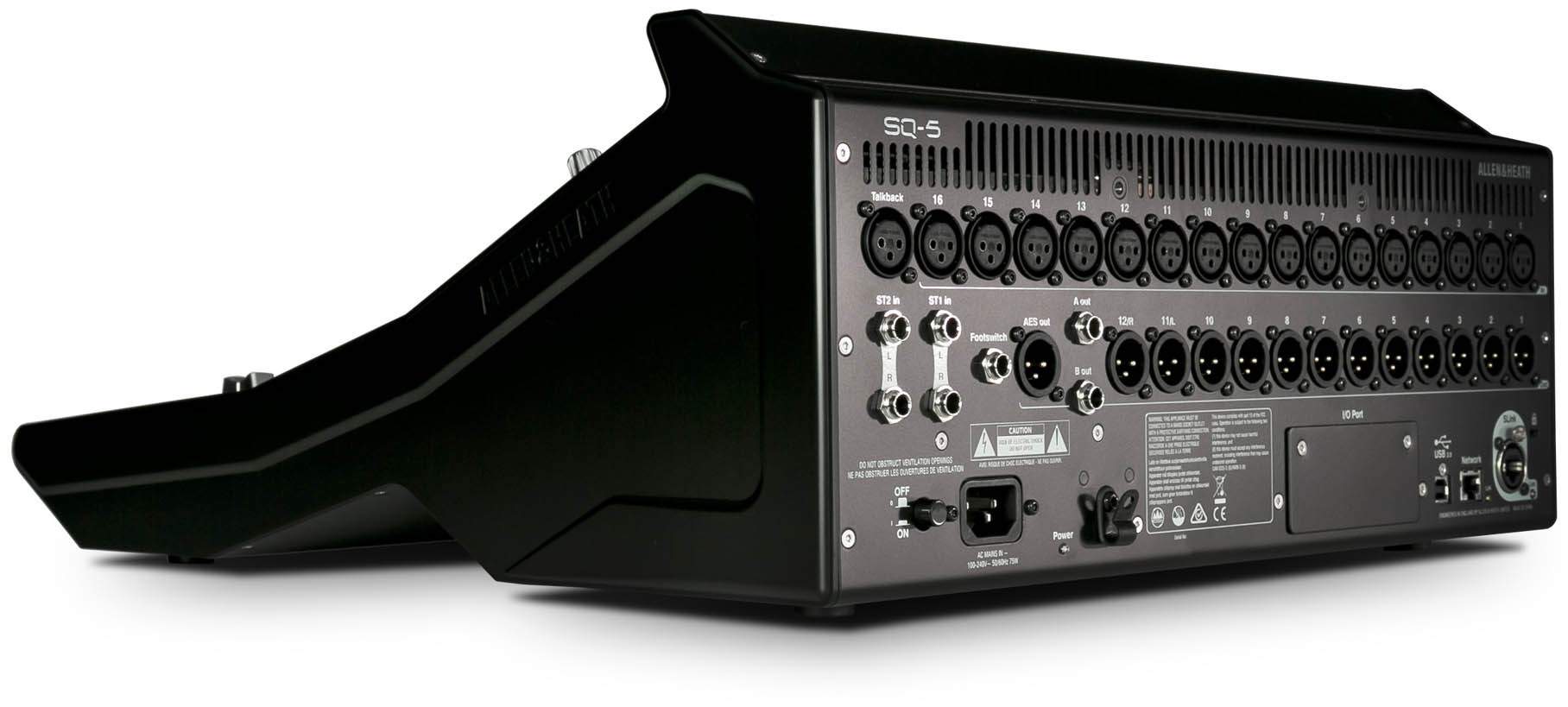 - SQ-5 ma wszystkie wejścia i wyjścia, których możesz potrzebować do pracy. Dzięki portowi SLink, SQ może być poszerzony do 48 wejść mikrofonowych przy użyciu jednego z ekspanderów, pracujących w 96 lub 48 kHz (np. AB168, AR2412, AR84 i DX168). Użytkownicy innych systemów Allen & Heath mogą bezproblemowo zintegrować się z SQ zgodnie z ideą „mix ‘n’ match”. Mikser SQ można podłączyć bezpośrednio do innego SQ, a nawet do dLive’a.