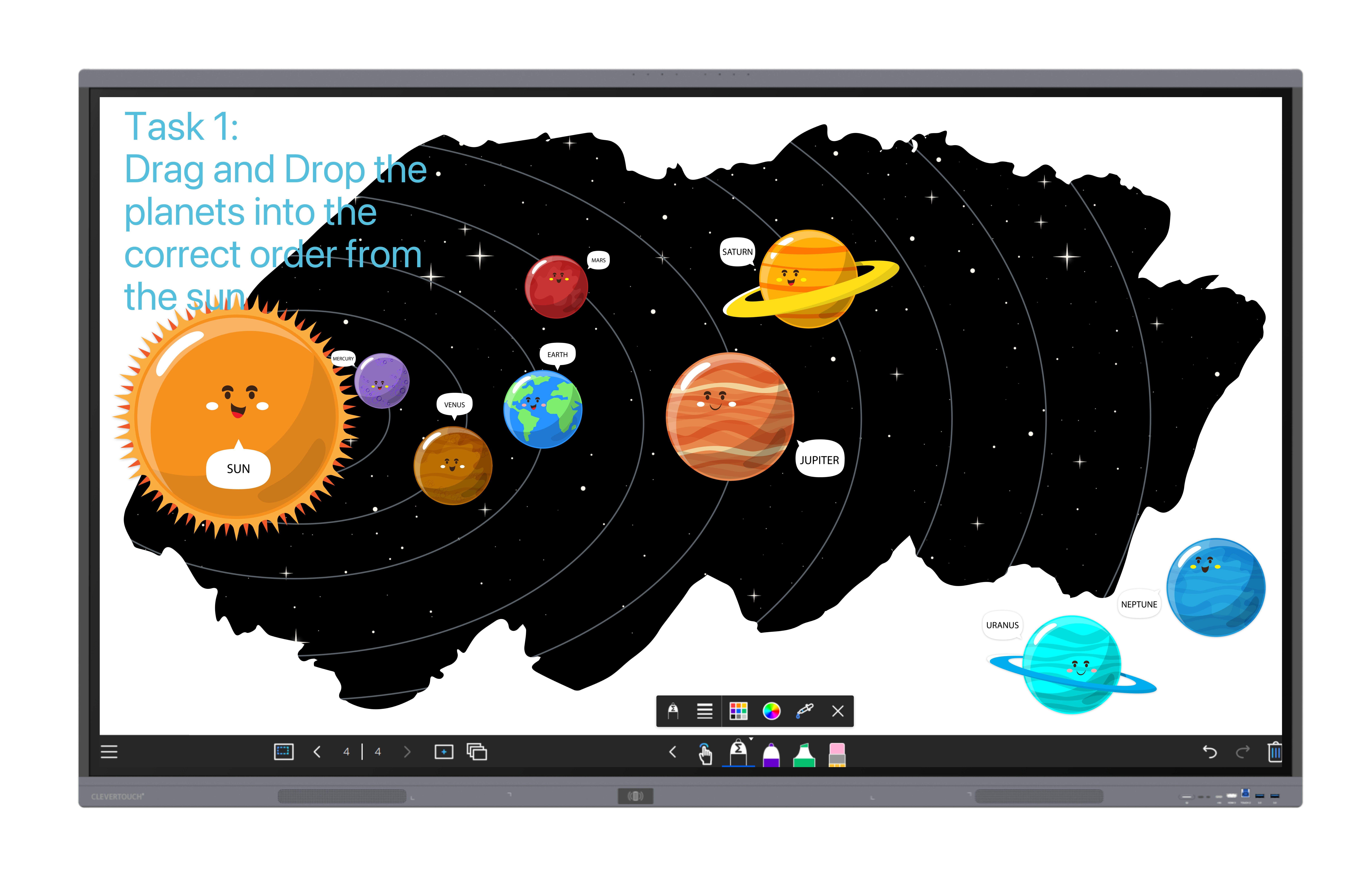 Wbudowane oprogramowanie Clevershare zmienia sposób udostępniania i prezentacji. Podłącz bezprzewodowo do 50 urządzeń do wyświetlacza Clevertouch i udostępniaj treści w kilka sekund – obrazy, filmy, dźwięk i wiele innych. Wyświetlaj do 9 ekranów jednocześnie, aby pobudzić prawdziwą współpracę i zapewnić zaangażowanie wszystkich uczestników. Dzięki zaawansowanemu sterowaniu dotykowemu prezenterzy mogą nawigować po udostępnianych treściach i dodawać do nich adnotacje bezpośrednio z ekranu – bez konieczności przełączania urządzeń. Jest szybki, interaktywny i stworzony, aby uczynić każdą lekcję lub spotkanie bardziej dynamicznym i angażującym.