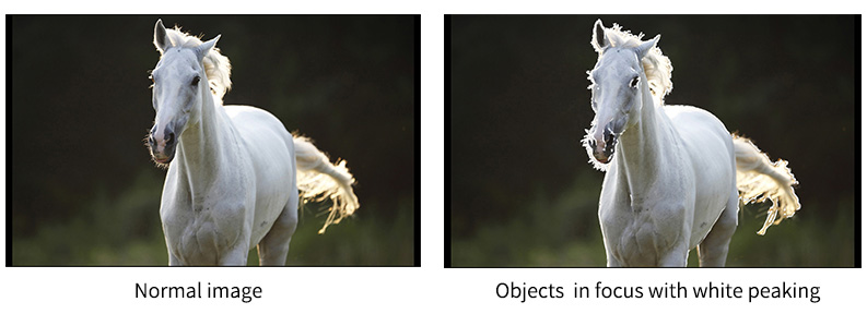 Służy do pomocy operatorowi kamery w uzyskaniu możliwie najostrzejszego obrazu. Po jego włączeniu wewnętrzny procesor wyświetla na ekranie kolorowe podświetlenie w miejscach, w których pojawiają się ostre krawędzie. Białe podświetlenie pojawia się nad ostrymi częściami obrazu.