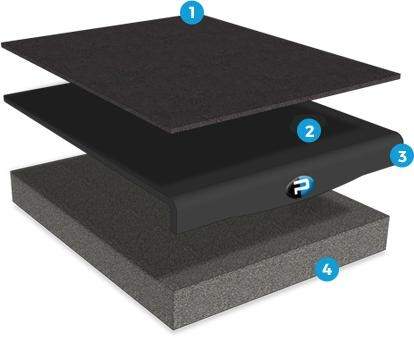Recoil Stabilizer to platforma głośnikowa, która łączy w sobie trzy podstawowe elementy: podstawę z pianki uretanowej o dużej gęstości, która izoluje głośnik od półki, podstawy do monitora lub stojaka; ciężką stalową płytę wycinaną laserowo o grubości ¼” i cienką powierzchnię wierzchnią z neoprenu. Pianka skutecznie izoluje zestaw głośnikowy, eliminując rezonans przenoszony przez wibracje, który niezmiennie wprowadza anomalie fazowe, podczas gdy stalowa płyta wprowadza znaczną masę do konstrukcji, stabilizując głośnik. Antypoślizgowa powierzchnia pokrywa górę, aby zapewnić stabilne zamocowanie monitora.